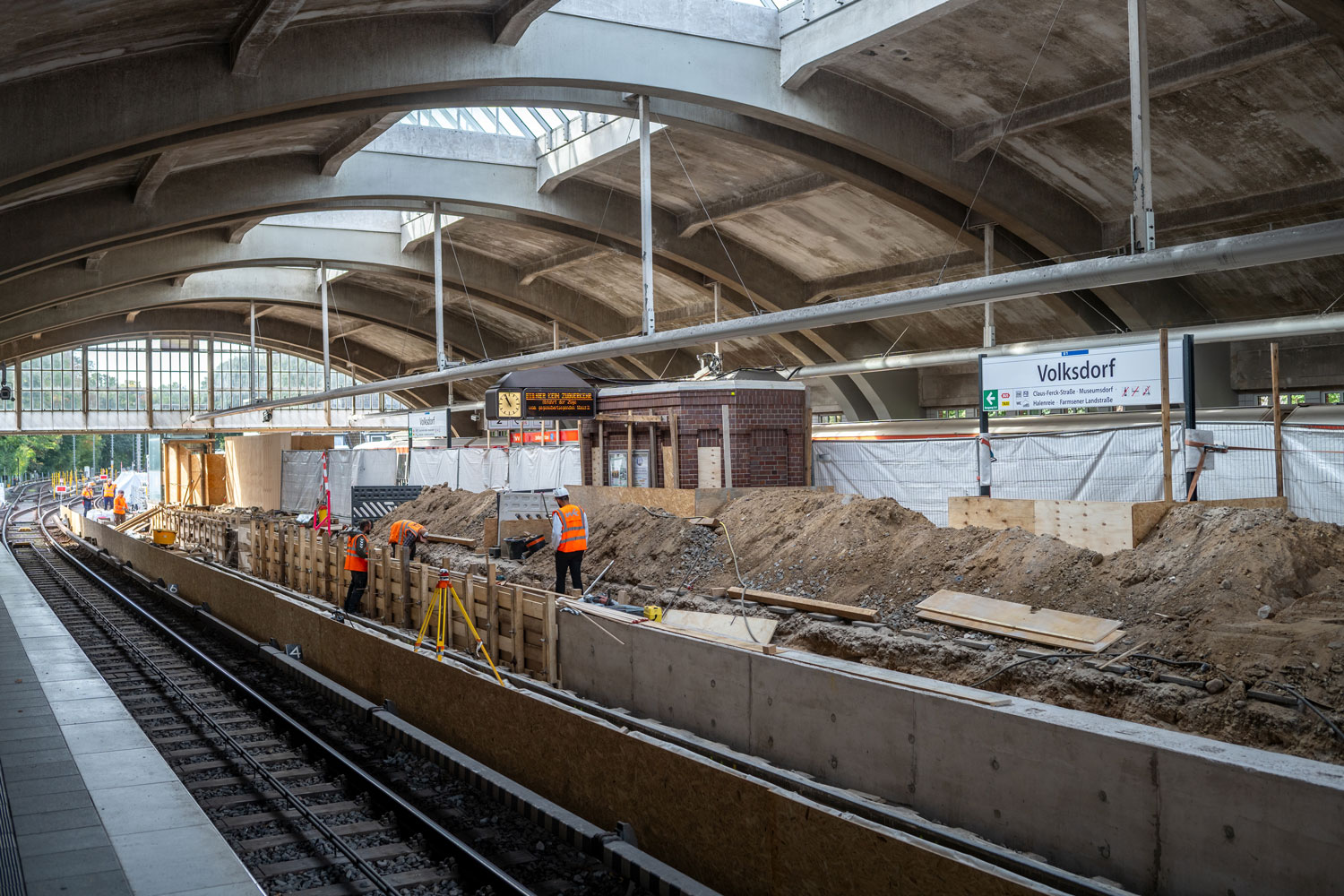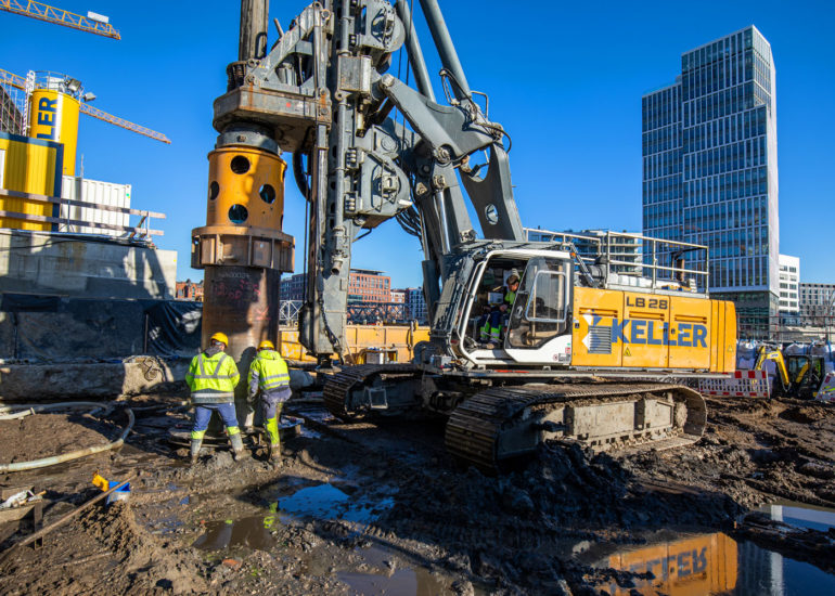 Bauarbeiter in der Baugrube der U5 in der City Nord
