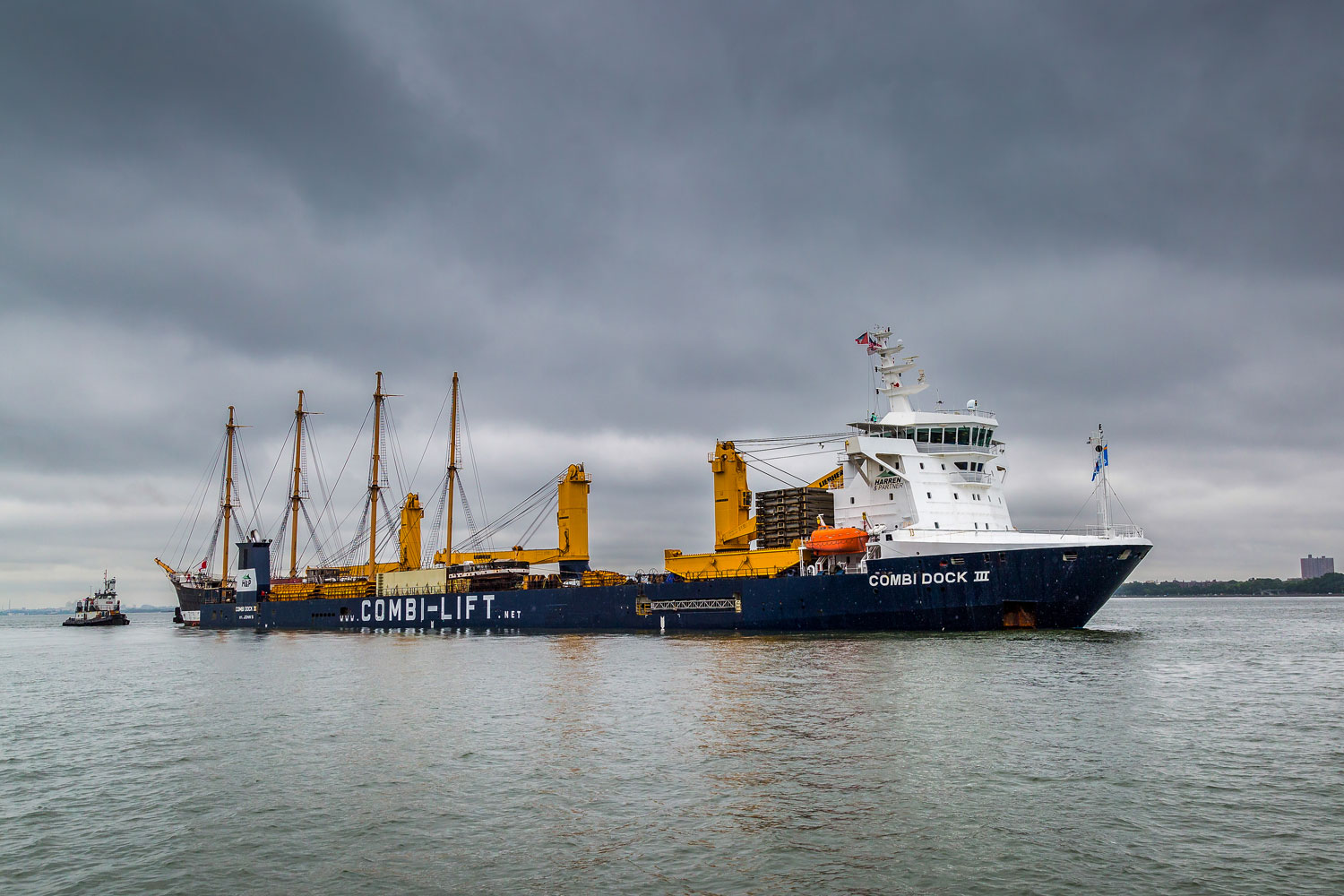 Für die nächsten 3 Wochen bezogen wir unser Quartier auf dem Dockschiff COMBI DOCK III, welches die PEKING Huckepack über den Atlantik nach Deutschland gebracht hat. Die COMBI DOCK lag bereits seit wenigen Tagen zwischen Staten Island und Brooklyn vor Anker.