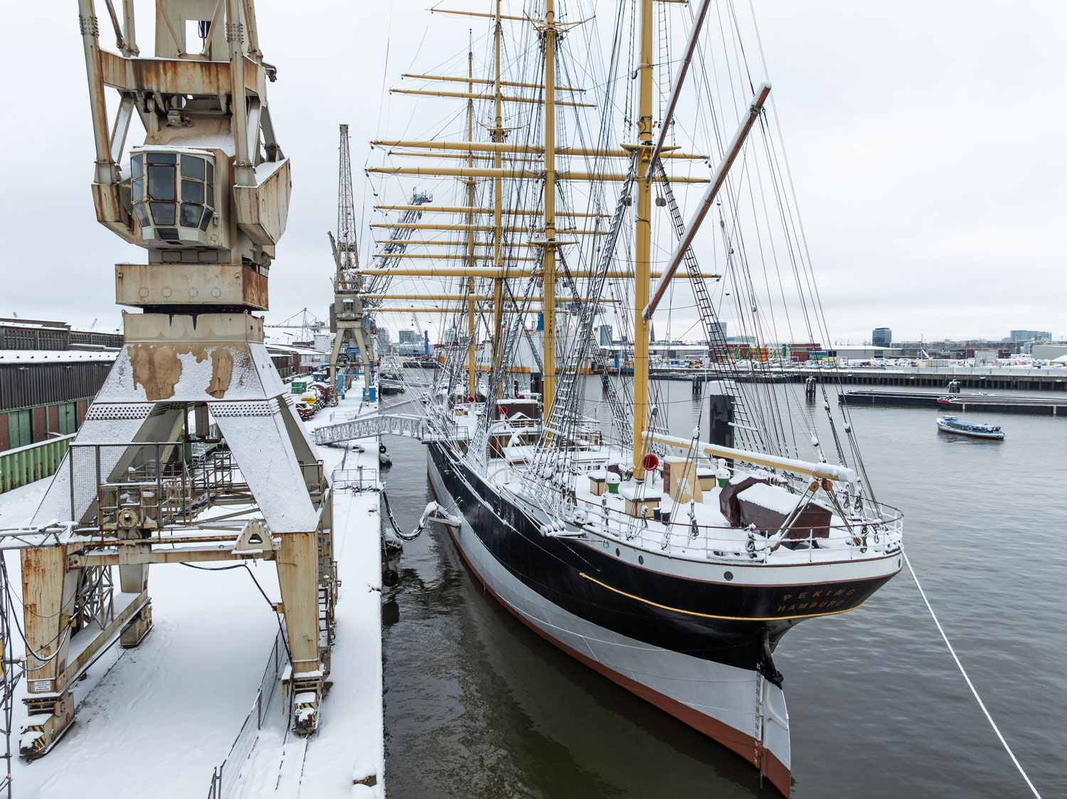 Darüber, wie der der zukünftige Liegeplatz der PEKING einmal konkret aussehen wird, gibt es zum gegenwertigen Zeitpunkt noch keine verlässlichen Informationen. Im ehemaligen Hafengebiet an der angrenzenden Speicherstadt entsteht seit den frühen 2000er Jahren die HafenCity. Auf dem Grasbrook wird ebenfalls ein komplett neuer Stadtteil entstehen. Dort, wo einst das ehemalige HHLA Überseezentrum stand, wird in den kommenden Jahren die HafenCity erweitert und das neue deutsche Hafenmuseum entstehen. Die PEKING wird dann dort ihren finalen Liegeplatz einnehmen.